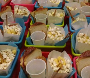 -merenda a cestino per ogni invitato o in alternativa trucca-bimbi
